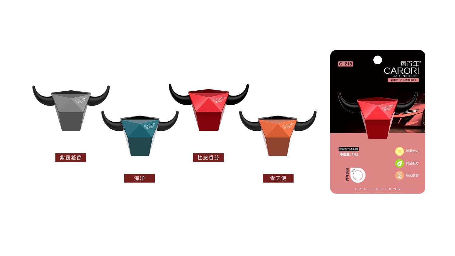 設(shè)計(jì)靈感來(lái)自勇武的西班牙斗牛,形象詮釋了人生應(yīng)永不言敗,奮發(fā)向上的美好品質(zhì)!正面采用切面設(shè)計(jì)搭配金屬噴漆與UV的獨(dú)特工藝,棱角分明、剛毅并重。其次面與面之間的轉(zhuǎn)折使光影變化更為豐富,放在車載風(fēng)口,盡顯別樣的光影時(shí)尚美學(xué)!