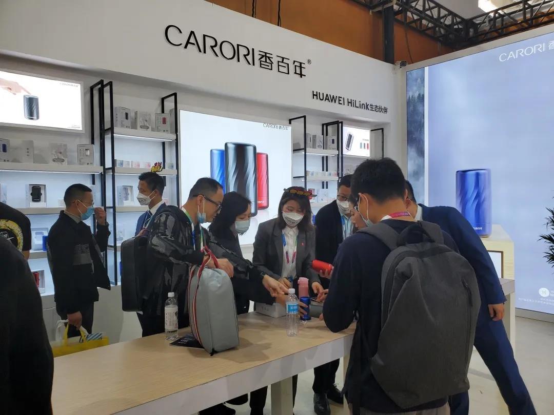 除了大氣的展位館設計,本次出征香百年的香薰產品更是收割不少好評,尤其是新品庫里南車載風口香水,因其藤條散香的方式、現代車載香氛的新探索的能力,被不少觀展游客贊,這也標志著香百年將引領2021車載風口香薰行業新風向!