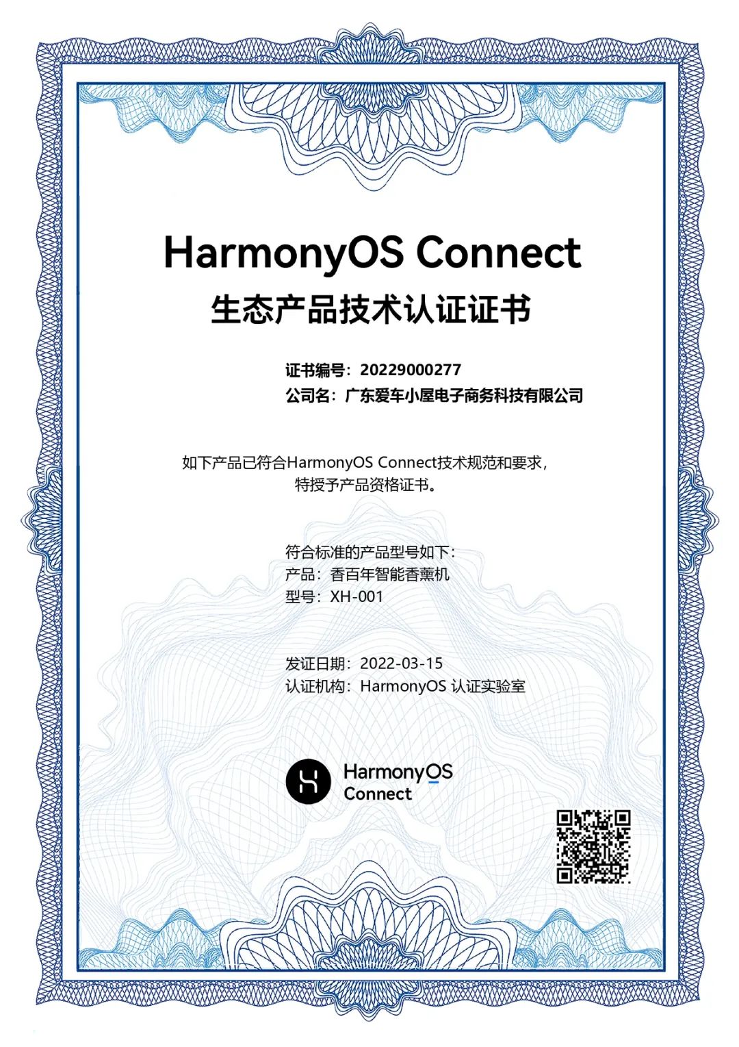 2022年3月15日,于一年一度的315消費(fèi)者權(quán)益日當(dāng)天,香百年傳來(lái)喜訊!香百年智能香薰機(jī)已通過(guò)HarmonyOS Connect技術(shù)認(rèn)證!值得一提的是,香百年智能香薰機(jī)是全球首款也是目前唯一的一款通過(guò)HarmonyOS Connect認(rèn)證的智能香薰機(jī)。